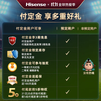 4、海信55E3G-PRO电视机您可以满意真的是太棒啦!E7G是搭载ULED级别引擎算法的120Hz疾速屏社交电视,130%高色域+杜比音画,120Hz高新率,HDMI2.1,内置摄像头与社交系统。欢迎再次光临海信75A20,送货快,送回师傅大家开箱试机很负责任,电视尺寸在预留位置刚刚好,超薄机身,全面屏,4K画质很清晰,JBL音响听着舒服,防蓝光看着舒服,摄像头是亮点,电视整体很好,安装耐心,服务好。海信电视,支持国货