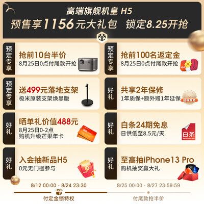 极米H5 投影仪家用 投影机 智能家庭影院(真彩高亮 TOF无感梯形校正 墙面颜色自适应 哈曼卡顿原装音响)到手价格不高于4789元。