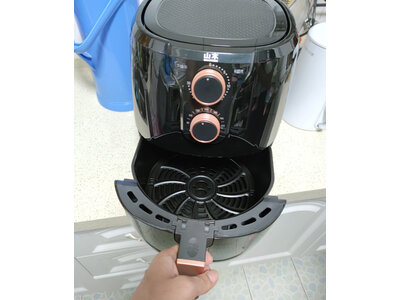 3、海氏K7空气炸锅先说质量还是很不错的,看起来也很好看,送人自用都没问题,一家三口用一点都不小,够用,温度不用调整,直接选择时间就可以,试了红薯,薯条,玉米,鸡腿都没有问题,很好,满意呢!
