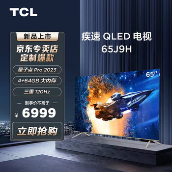 TCL电视 65J9H 65英寸QLED原色量子点电视 120Hz高刷 4+64G 4K超清全面屏 液晶智能平板电视到手价格不高于6999元。