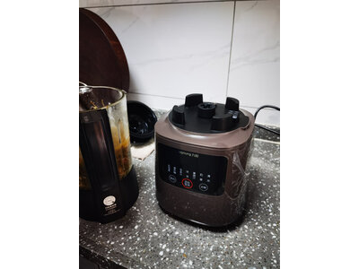 4、西屋WFB-HS0454破壁机刚试了,磨成五谷杂粮豆浆非常好喝,很细,口感很好,做活动买的价格比较实惠,声音还好吧,能接受可预约方便,外观比较漂亮,相信老品牌西屋破壁机质量很好、杯子很厚,做工很好,机体很重,研磨杯质量一样的好,一看就是好货,冲着西屋品牌买的