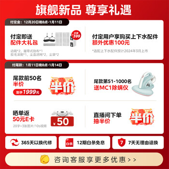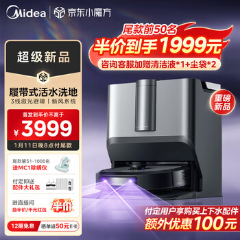 美的(Midea)扫地机器人扫拖一体 灵眸W20洗地机器人 履带式活水洗地自动集尘扫拖洗烘一体机洗地机拖地机到手价格不高于3999元。