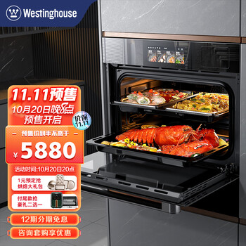 西屋(Westinghouse)嵌入式蒸烤炸一体机智能触控彩屏家用多功能二合一独立控温蒸箱烤箱进口搪瓷内胆V8到手价格不高于6480元。