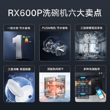2、美的rx600和rx600p很大气的一款洗碗机很不错一次快乐的购物和安装,第一次不好装,师傅给了安装方案,第二次就很快完成啦!一大早师傅就过来,动作非常迅速!以后可以不用动手洗碗了!