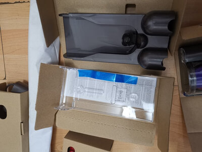 3、米家2slim吸尘器送货神速,第二天就送达了。没有立刻开箱,周末开箱试用了一下,说说感受。 我家里有一部小米V7,只能在这两款间进行比较。 包装:包装设计的很好,部件整齐,排布盒里,所有配件都有塑料袋包裹,拿出来都很干净,无擦痕。配得上价格。 配件:配件盒里,不说最多,但是都是日常实用性很强的。碳纤维的杆子确实很轻 主机:主机还是有些重量的,和V7差不多,但注塑 外形,都很漂亮,一圈金色非常cool。有电量显示,余48%,机器很干净。各部件材质很好 吸力:吸力很大,即使用最小档位,还能隔着轨道吸出灰尘。而且滚有牵引力,操作时非常顺滑,感受很佳 声音:声音属正常,就是有点哨音,希望日后改善 总体:很不错,支持国货