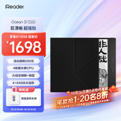 掌阅iReader Ocean3 Turbo 7英寸电子书阅读器 墨水屏电纸书电子纸 看书学习 4+64GB 儒雅黑·支架磁吸套装到手价格不高于1698元。