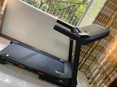 4、佑美A8跑步机跑步机收到了,因为特殊时期第一该做的事外包装消毒,打开包装马上就安装,配有工具特别简单一人搞定,外观高大上,用料厚实挺重的没味,跑台够宽跑起来挺稳的没什么声音,试了下可以折叠不占地儿,想换地方自己可以推着走很方便感谢京东小哥送货上门好评