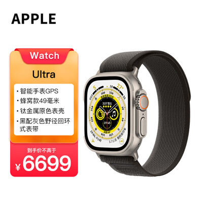 Apple Watch Ultra 智能手表钛金属原色钛金属表壳 黑配灰色野径回环式表带M/L MQFH3CH/A GPS+蜂窝款 49毫米到手价格不高于6699元。