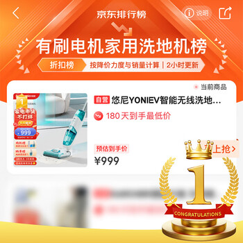 悠尼YONIEV智能无线洗地机F10吸拖洗一体家用扫地机擦地机拖地机电动拖把手持吸尘器到手价格不高于999元。
