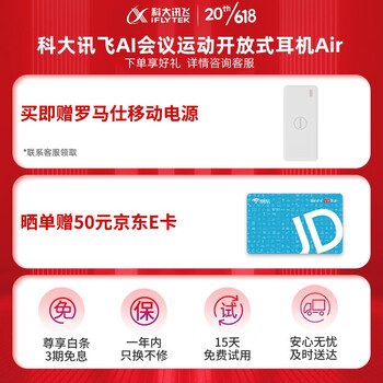 科大讯飞(iFLYTEK)开放式办公耳机iFLYBUDSAir 可拆卸不入耳 续航时间长 会议通话录音转文字办公耳机 适用苹果华为 开放式办公耳机air 【砂岩白】到手价格不高于849元。