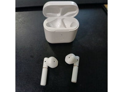 4、科大讯飞iFLYBUDSAir蓝牙耳机活动抢购时候买的,上午10点下单,下午下班时候就拿到了,耳机很不错,蓝光颜色很正,试了一下收听和麦,声音略轻,正好我也喜欢这干净的感觉,觉得这一票抢购还是比骄值的 五星好评送上 另外有一点需要注意,耳机是二合一单孔单插的,适合手机和笔记本用,如果要在台式机上用,需要另买跟一母转二公的耳机转接线,不然就只能收听没法用麦克风了,本包装内是没有附送这根线的 希望我的评论对大家有帮助