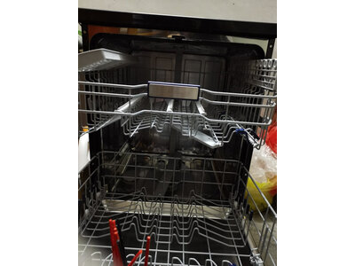4、美的V8洗碗机用下来,确实不错,如果除了粘着饭粒的是没法洗的,其他的,水里先冲一下泡一下,等空了放洗碗机洗,解放老腰了,我特别不喜欢洗碗,现在水池也不会堆的都是碗了,有脏碗直接扔洗碗机,满了就洗,真好,也不会洗的身上老是湿答答了,相对洗碗块,更喜欢洗碗粉+专用盐,高温杀菌师傅送货上门,安装很简单,自带的进水管太短了。洗了一次碗筷,清洗效果不错,比手洗省事多了。
