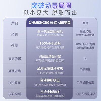 长虹(CHANGHONG)J5Pro 投影仪家用办公投影机智能家庭影院(真1080P分辨率 全局自动对焦 自动梯形校正)到手价格不高于1599元。