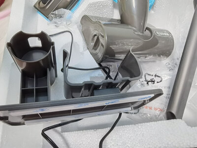2、戴森v8 fluffy extra和v10送货速度一如既往的快。包装用心,拆开主机和所有配件花了不少时间,产品非常精致,做工优秀,买的配件包非常实用。送的充电支架省去了打孔的麻烦。组装完成后迫不及待吸了一回床垫,吸力强劲,吸出灰尘不少。充满电,强效模式下大概可用半小时左右。后续其他场景使用后再补充评价。两年前买的v9,现在决定更新换代。对比以前,外观变得更加精致大气,颜值很高!摸起来手感也很好。吸力强!性价比高,声音也比较小。支持,买!
