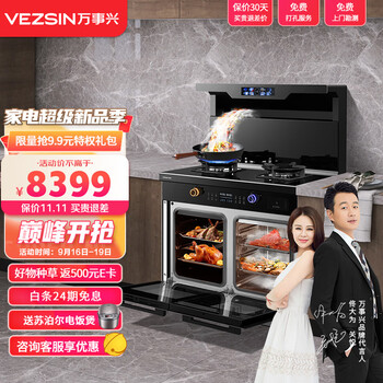 万事兴集成灶 A1 蒸烤独立集成灶 左烤右蒸 双腔独立 空气炸 侧吸下排 彩屏挥手智控 天然气到手价格不高于8399元。