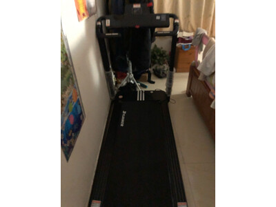 3、亿健精灵Pro跑步机昨天拍的今就到货了,京东送货就是快!免安装,拆开包装箱就能用,很方便.儿子和老公迫不及待的试了试,跑台很宽,他俩都1米八几的个,跑起来不觉得小.挺稳的,感觉挺结实,可以立起来收纳,很方便,声音不算大可以接受