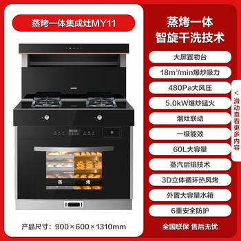 苏泊尔(SUPOR)集成灶蒸烤一体式集成烹饪中心环保灶侧吸式抽油烟机灶具蒸烤箱自动清洗 MY11 蒸烤一体+智旋干洗+烟灶联动-天然气到手价格不高于7199元。