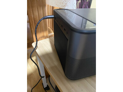 4、海信Vidda C1S投影仪外观看上去很好,总体来说还是非常不错的,尤其是把窗帘拉上,看上去非常棒,房间瞬间变成了电影院。收到货时候以为噪音正常,昨天无意间发现抬起一侧,噪音小了很多,自认倒霉吧,过了30多天了,不能退不能换,只能修。联系客服让加售后微信解决,最后搞半天小丑竟是我自己