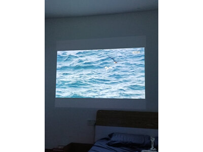 5、爱国者投影仪H38和H03音响很棒哦,我家背景墙是淡蓝色的,投上去效果都很赞诶,非常满意,机器也非常小巧精致,喜欢,画面很清晰,开机非常快。自动校正画面超方便。