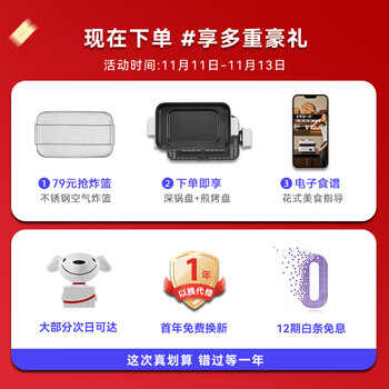 - 特征特质:烤涮两吃,快速蒸汽,可更换烤盘