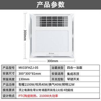 - 功能:风暖,照明,换气,吹风