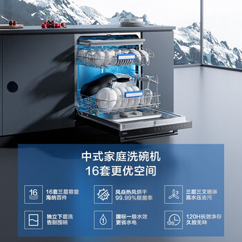 老板 16套三层大容量洗碗机 家用洗碗机嵌入式洗消一体机 一级水效 强力洗碗机 三锅同洗 WB797D到手价格不高于7699元。