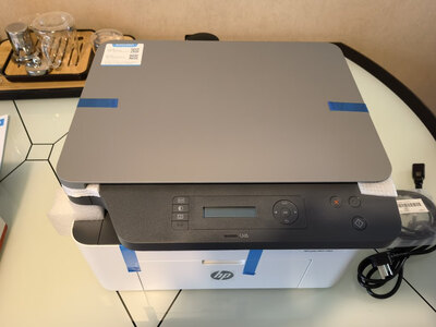 4、惠普437n打印机前面机子出问题,卖家果断给换了,快递单不在家,第五天回家快递给送来,然后第二天安装,手机连接,电脑连接,客服都很耐心,也很细心的指导,说明,试打两张,效果很好,字迹清晰,颜色跟原书一样,好评了