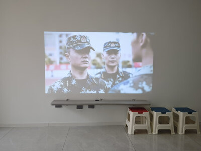 4、联想T200天骄版投影仪家里是硅藻泥的墙,黄色的,但是效果也是非常不错呢,比想象中的好很多,预售的时候买的,也是头一次用投影仪,很欣喜,效果是真的棒!