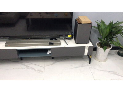 4、三星q990c回音壁音响种草好久了,终于下手了!物流特别给力,比预计得还快拿回来老公马上就安装了,音响效果很好,在家看电影音效好了好多,好棒,超喜欢!和家里的风格也很配,电视柜下边摆低音炮特别完美的位置!大爱,!