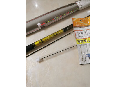 2、红狼鱼竿和光威送了一个鱼漂,5个双钩,鱼竿也非常漂亮,不说特别好,反正性价比高,质量也非常满意这个是真的好,材料和做工都特别精致,做工真的非常棒,老爸很喜欢