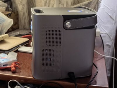 3、先奇H8pro投影仪用过了 来推荐哦 ,看中小巧颜值高 小小的一只 提手是皮质的 客厅卧室拎着就走 特别方便,白天看拉上窗帘效果不错哦 拍照手抖了 图有点糊 还没学会侧投校准 准备再研究研究 干脆买了个投影置物架 挂墙上 散热也更好