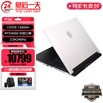 微星(MSI)绝影14轻薄游戏本 14英寸釉月屏 RTX4060笔记本电脑 16G 1TBSSD 全新13代酷睿 i9-13900H 2.5K 240Hz到手价格不高于11499元。