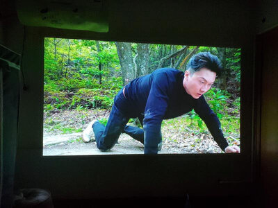 3、先奇B9投影仪不错不错,性价比很高的一款投影,看了很多款了,也不想花太多钱,这个价格非常合适,斜着投矫正也是可以满足的,还可以连蓝牙音箱,晚上看电影终于不用搬着电脑了!画质很清晰,实际画面要比拍的好一点,平时看电影看电视剧很好,这次买了这个投影仪,以前在柜子里吃灰的ps4也拿出来了,躺在床上玩主机游戏了!