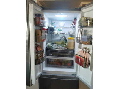 3、容声BCD-319WD11MP冰箱家里的容声直冷冰箱服役10后终于挂掉了,赶紧下单买了新冰箱,颜色很好看,风冷双循环不用除霜,不担心串味,制冷和保鲜效果比之前的好多了,比较满意,无奈家里门小,进不去大冰箱。