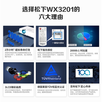 松下(Panasonic) 投影仪办公室家用投影机会议商用高清白天培训教学家庭影院电视客厅户外 3201高亮版【3200lm高性价比真亮出彩】 高清线套餐到手价格不高于2599元。