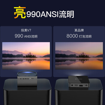2、投美v7和V7 Pro投影仪收到了,性价比很高,外观很漂亮,投影的也很清晰,很好操作网上对比了好几款投影仪,有一千多的,三千多的,最后在首发当天订了这款,确实没让我。白天不拉窗帘也非常清晰,比那款一千多的(退了)强了不知道多少倍。用了几天才来评价,瑕不掩瑜,总体非常满意,值得拥有。