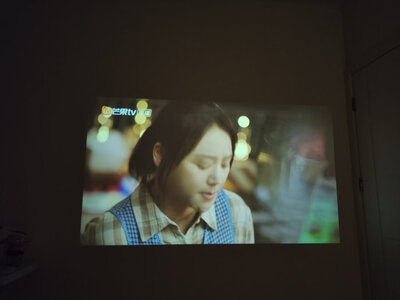 3、MirvalK7投影仪用了几天了,确实不错,打开就感觉挺小巧的,颜值也高,连接也比较简单,就一根电源线,我放在床头的桌子上,画面很大,距离白墙有三米左右,画质很清晰,躺在床上看太爽了,自带的音质也不差,不用再接音响了挺方便!